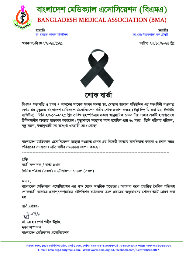 শোক বার্তা ডা. মোস্তফা জালাল মহিউদ্দিন এর সহধর্মিনী নওজাত বেগম
